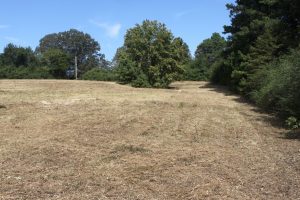 A mobile home was on the site for years on the back of the property under big oak trees. Most of the property is terraced and provides a great buffer between you and the road. The property was recently mown but has a privet hedge along the road.